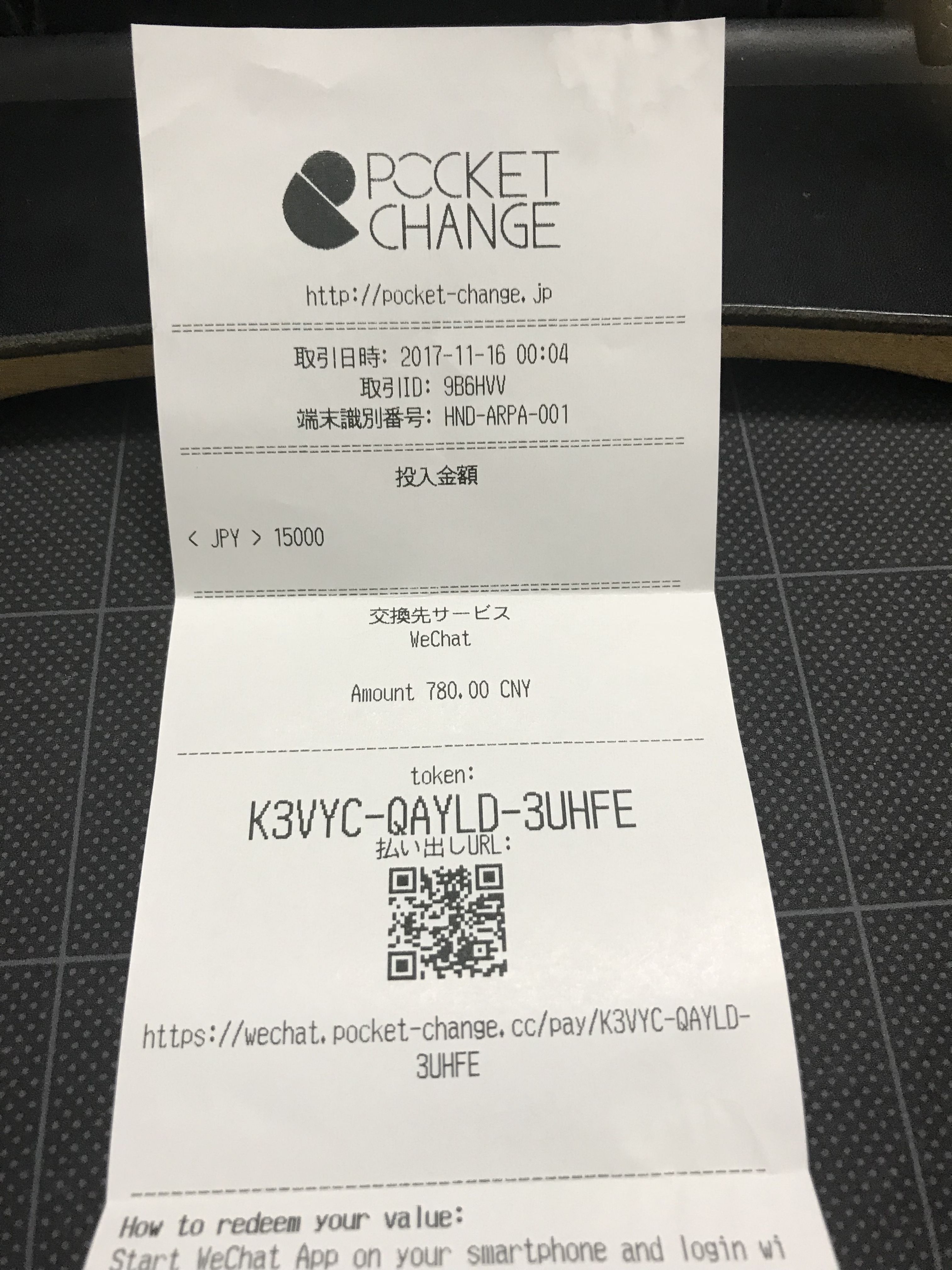 では実際に行ってみてどうだったでしょう。私たちはご親切に@GOROmanさんが分けてくれた0.1元でWeChat pay(微信支付)のウォレットを開かせていただき、羽田の入国フロアにあるPOCKET CHANGEを使って3万円ほどどーんと課金して現地に向かいました。現地にキャッシングとかはあるだろうから、元のキャッシュは持たずに出かけました。ちなみに所有クレジットカードは中国ではちょい弱めのVISAのみ。